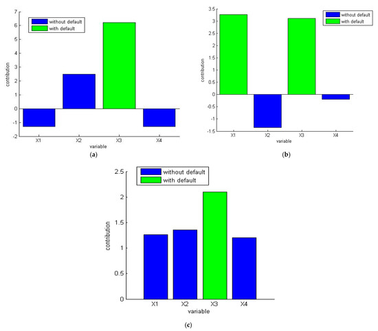 Now, we conduct a comparative analysis with other machine learning methods, such as monoscale kernel PCA, neural PCA, and traditional PCA to a FDI of the simulated defect (in the variable at scale 4 of wavelet coefficient). Fault isolation is established by calculating contributions, where the highest contribution shows the defected variables in the system. The result of simulation of these methods are presented in Figure 12a–c. It describes the fault isolation by calculating the contributions on terms of the SPE.