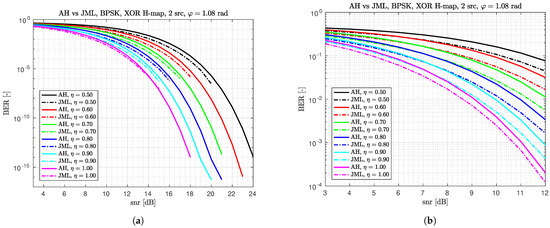 In this subsection, we derive a general expression for the H-BER of a detector of the XOR H-map of two BPSK sources. The detector metric will be called M—it is a function of observation(s). Denote by a the decision threshold. We assume the detector to be of the form
