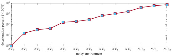 We designed the relative deterioration percent () index to measure the degree of difference between the final solution obtained by the same algorithm in NES () and that in IES (). Its calculation formula is shown in Equation (8).
