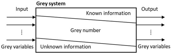 Grey theory is one of the methods used to handle uncertainty, especially in MCDM problems []. In this paper, a combined grey AHP–EDAS method is proposed for evaluating video conferencing software with a case study on the top eight software companies in Vietnam. According to the grey theory, the information degree is divided into three categories—“black system”, “white system”, and “grey system”—based on whether the information is “unknown”, “completely known”, or “partially known”. The framework of the grey system theory is depicted in Figure 2.