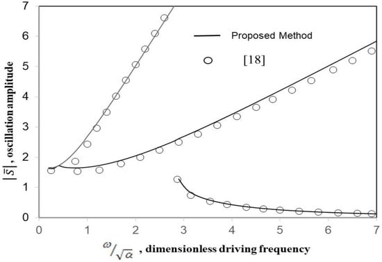 Comparison between the frequency response curves obtained from the proposed method and [18] (α = 1, β = 2, Γ = 6).