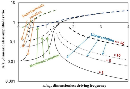 The driving frequency in Equation (14) is equal to the response frequency of , which is given by: