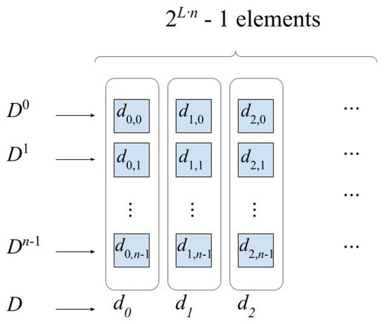 As one can observe, the sequence is composed by the j-th component of each element in the sequence D. Equivalently, the sequence can be considered as a decimation sequence obtained from D giving rise to the following set of decimated sequences, as it is shown in Figure 2: