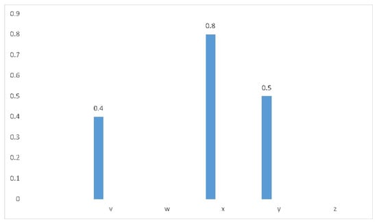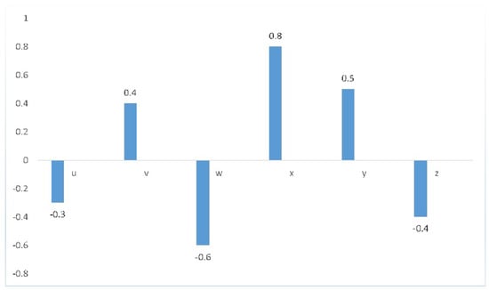 In BF subset of , presents the satisfaction degree of z to the correlated characteristic of and is the satisfaction degree of z to the somewhat opposite characteristic of . The fuzzy set presents only positive aspects of a situation with membership function . The difference between the fuzzy set and the BF set is shown by the following example. Let be a set of workers of a company. Define a fuzzy set on A with fuzzy property “honesty”, the workers and y having property “honesty” mapped to , as shown by the bar graph in Figure 1.
