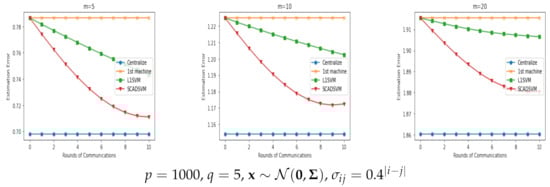 For model 1, we used the dimension and , local sample size and 500, number of machines . For models 2–4, the dimension , number of machines , and total sample size 10,000.