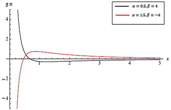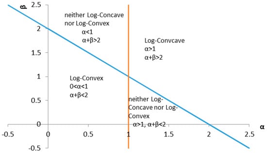 Figure 3 shows the function for the two cases where and When , is positive for , and for is negative. Therefore is neither log-convex nor log-concave. Further, when , is negative for , and for is positive. Therefore, is neither log-convex nor log-concave.