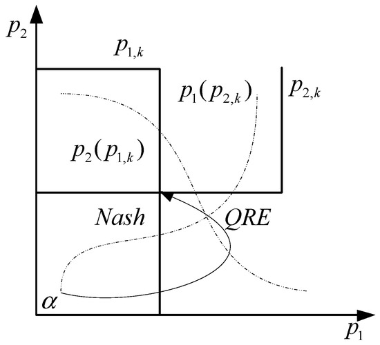 To solve the QRE, we start at . and vary within . Hence, the strategic game of retailer 1 and 2 in finite iterations is as follows, where is the period.