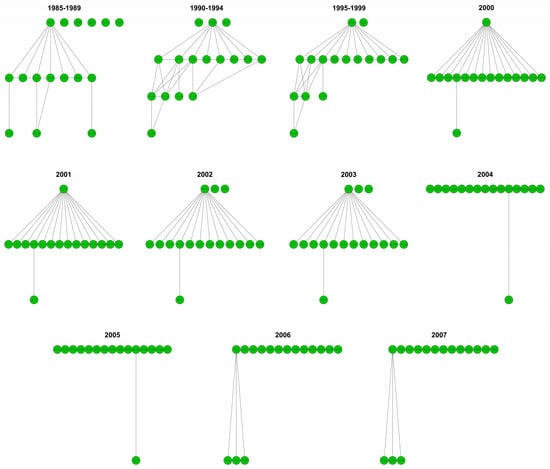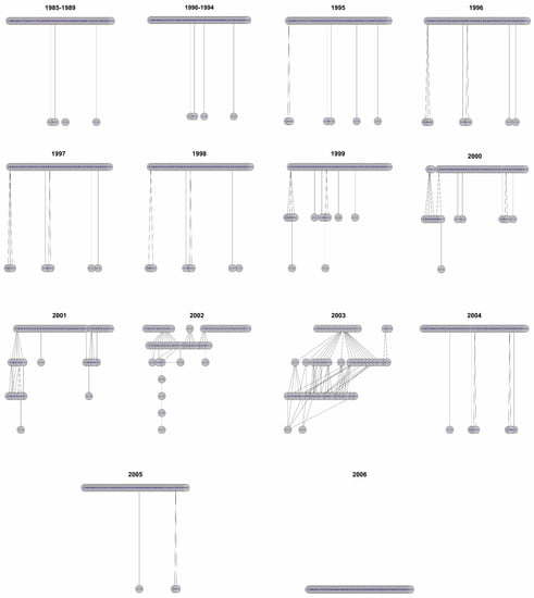 The results of the calculations of the density, small worldness, centralizations, average centralities and standard deviation of centralities are presented in the Supplementary Materials due to their large size. The calculations of the relevant local indicators (degree centrality, betweenness centrality) for each node are also included in the Supplementary Materials. The network analysis in terms of these local indicators together with the clustering coefficient has already been discussed [25].