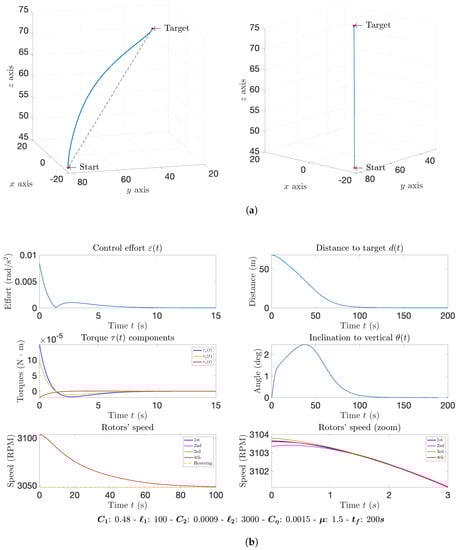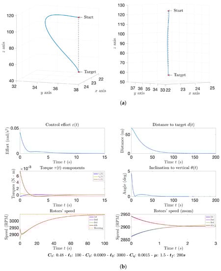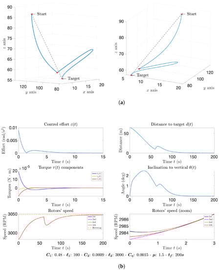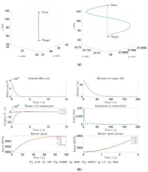 In order to perform numerical simulations, an OS4-Mini-VTOL quadrotor has been taken as reference model, as reported in [40]. In particular, the parameters values summarized in Table 1 were made use of in the computer codes.
