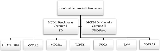For more than a quarter of a century, the MCDM-based financial performance literature has included measurement and evaluation-based analyzes to achieve better rankings [26]. Of course, it would be a good approach to explore the hidden capabilities of all MCDM methods for a better measurement. In this sense, evaluating the final scores of MCDM methods with some objective criteria might give us a good idea. In this study, seven popular MCDM methods were compared in order to make a more understandable and comprehensive comparative evaluation: PROMETHEE, TOPSIS, MOORA, COPRAS, CODAS, SAW and FUCA.