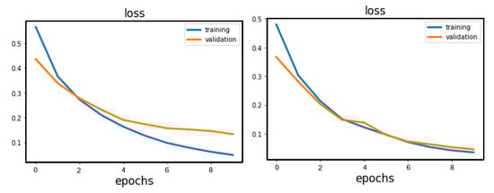 Loss curves for damage diagnosis models 1 (left) and 2 (right).