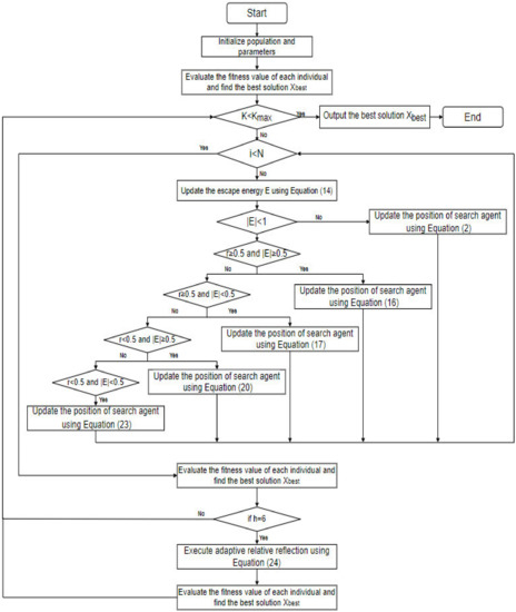 - Heidari, A.A.; Mirjalili, S.; Faris, H.; Aljarah, L.; Mafarja, M.; Chen, H. Harris hawks optimization: Algorithm and applications. Future Gener. Comp. Syst. 2019, 97, 849–872. [Google Scholar] [CrossRef]
