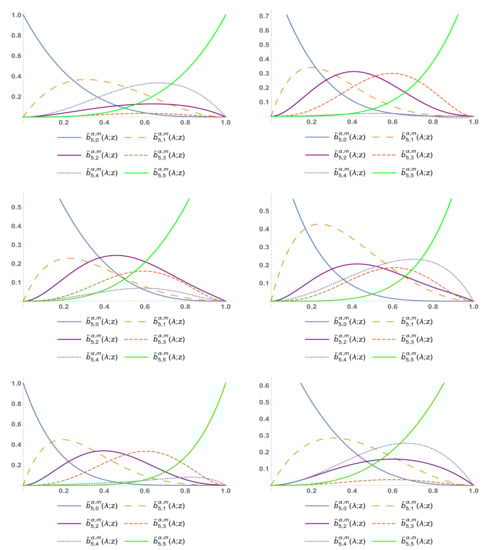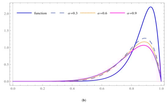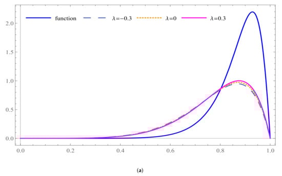 We first took the function into account with to show the convergence of univariate operators for different values of α and λ in Figure 1. Furthermore, Figure 1 shows the comparison of blending univariate operators. It is clear that the new blending operators have a better approximation thanks to the shape parameters α and λ.
