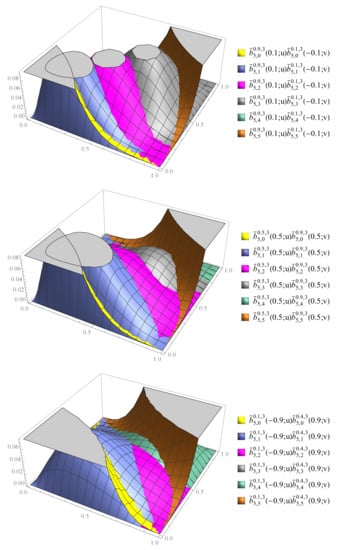 In this section, we give three illustrative examples using Mathematica to verify the convergence behavior and accuracy of the studied univariate and bivariate operators for different functions. In Figure 1, Figure 2, Figure 3 and Figure 4, the graphs of functions that are given in the examples and the graphs of the blending univariate and bivariate operators are shown for different , and s parameters. We also studied the behavior of univariate and bivariate polynomials. The behavior of univariate and bivariate polynomials is demonstrated in Figure 5 and Figure 6, respectively.
