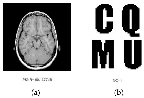 Among them, is the original watermarking image pixel value, is the extracted watermarking image pixel value, and is the watermarking image size. and , respectively represent the pixel values at the corresponding coordinates of the original medical image and the tested medical image and the image of size . In the following specific experiments, we conducted common attacks and geometric attacks on different medical images.