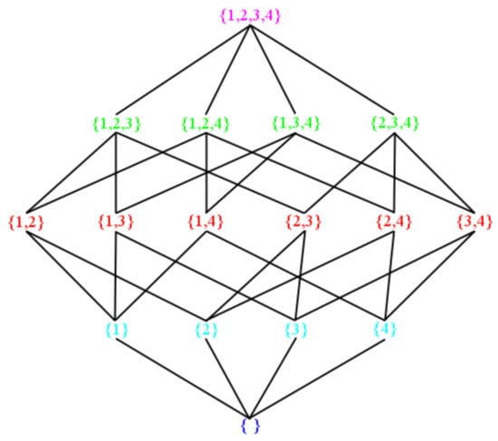 For readers, let us discuss an example; take and let the set , the power set of is . The number of chains in ordered by set inclusion is . In [10], it is shown that there exists a bijection between the collection of all equivalence classes of fuzzy subsets of nonempty finite set and the collection of all chains in the power set of . The fuzzy subsets have been used to characterize fuzzy matrices of a finite order [11,12], fuzzy subgroups (fuzzy normal subgroups) of a finite group [13,14,15,16,17,18,19,20].