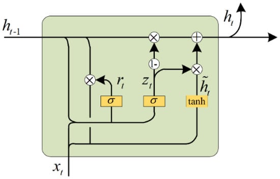 In Figure 3, represents the model input data at time t, represents the output result after the input data are calculated by the reset gate and the update gate at the previous moment, represents the information reset gate, represents the information update gate, represents the state to be activated, represents the output of the model at the current time t. The formula is as follows: