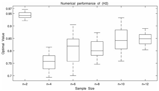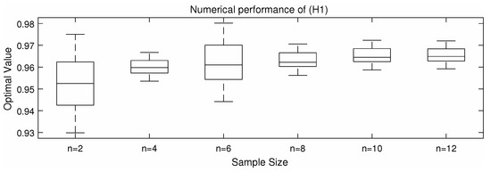 The computation results are shown in the Table 3 and Table 4 and Figure 1, Figure 2, Figure 3, Figure 4 and Figure 5 below sequentially. In Table 3 and Table 4, we show the average cpu time (Times(s)), iteration (Iter) and optimal values (Optimal Vlue) of each test problem with different sample sizes.
