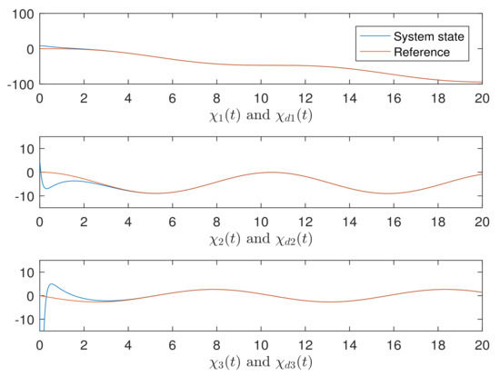 where the initial values are set as = 8, = 4, = 2. The desired tracking trajectory is described as