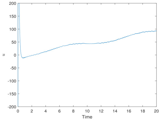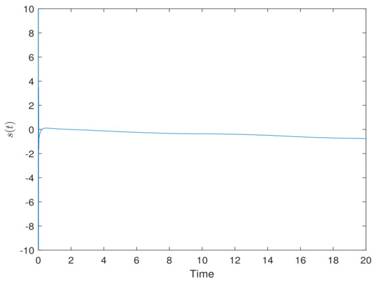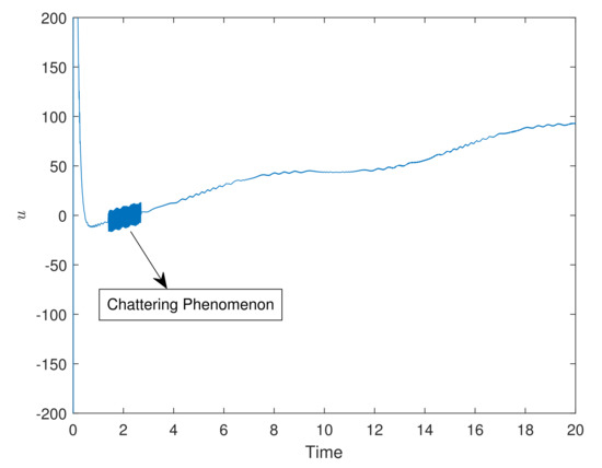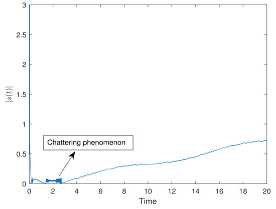 According to the definition (16) of the switching control term, it can be easily concluded that the control (15) is only continuous or continuous inside the boundary layer. However, in the outside of boundary layer, the control (15) is discontinuous because the switching term involves the sign function . Although the discontinuity may cause the controller oscillation, it can achieve a fast convergence rate.