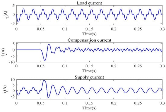 Moreover, Figure 15 shows the current tracking curves under the two methods. In both methods, the compensation current could track the reference current when the load changed. Moreover, it was roughly seen that the tracking curve of the comparison method was over-tracked and covered other curves, so its tracking compensation performance was worse.