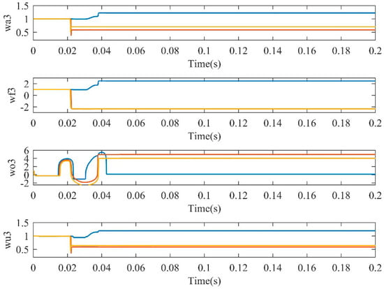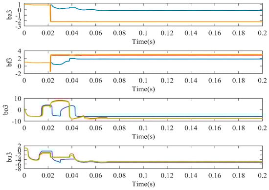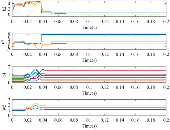 Figure 9, Figure 10, Figure 11 and Figure 12 give adaptive adjustment curves of some parameters of the NFNN, which did not need to be adjusted manually. After adaptive learning, convergence was achieved in a short time and the system response could also achieve good results. This showed that the NFNN had an excellent adaptive adjustment performance and stability.