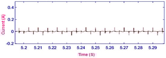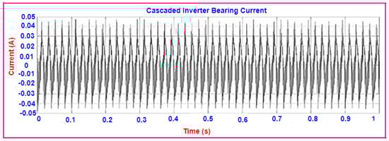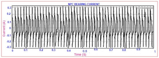 The circulating bearing current of the proposed induction motor drive has been reduced to 0.036 ampere compared to T-bridge, NPC, and cascaded H-bridge multilevel inverters, depicted in Figure 24, Figure 25, Figure 26 and Figure 27.