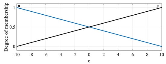 where represents the angular velocity and the angular position. is the armature current. The parameters of the servomotor considered in this simulation study are provided in Table 2 [30]. The desired values are defined as . The initial values are set as: . is selected equal to 7/9. and . These are the obtained values by using the LMI MATLAB toolbox. The parameters and are found as and . Figure 1 shows the membership function of which is based on Table 1.