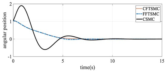 Table 3 examines the comparison between the three control methods for the angular position. Note from Table 3 that the advantages of the proposed method are the fast and finite-time convergence to the reference trajectory and robustness to parametric uncertainties and external disturbances. The error signal is converged to zero and the ISV and IAE criteria [41] are smaller than the other methods. Moreover, unlike the CSMC approach, the proposed method is free of the chattering phenomenon.