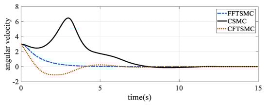 Note that we can infer from Table 3 that the proposed approach yields a control signal with smaller amplitude that of the two other approaches. Note also that the proposed approach yields chattering-free dynamics. Figure 6 shows the dynamics of the angular velocity.