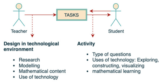 Task design poses a challenge for teachers since they must choose which activities will be performed by students and which will be performed by technology. They must also make decisions regarding the feedback provided by technology [23]. When designing tasks in which technology is involved, teachers have to assess its function as an artifact or instrument for teaching and learning mathematics since its particular characteristics can shape the conceptual development of users [1]. Accordingly, emphasis has been placed on the importance of proposing tasks in which technology promotes more qualitative reasoning and on reducing the reproduction of algorithms or mathematical applications that trivialize the task [24]. Hence the need to explore the possibilities offered by technology to model, to develop experiments and simulations, and to act as a support for the development of numerical solutions, visualizations, and graphs and for accessing information. We are referring to design in terms of Leung [25], who points out that