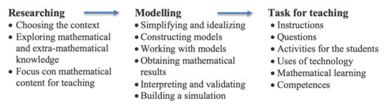 Some researchers emphasize that the design of modeling tasks should focus on favoring the process and reasoning more than the results [18,19]. Geiger [1] provides some general principles for the design process. Fit to circumstance: the tasks must consider the local conditions, such as the specifications of the local curriculum, resources of the institution, and the particular characteristics of the students. Challenge: the tasks must challenge the students’ way of thinking and propose open-ended and realistic problems. The tasks should offer students opportunities to explore, justify their actions, and make decisions. Tasks should be challenging yet accessible, meaning the end goal of the task should be attainable. Students should know what is expected of them in terms of the tasks in order to be successful and fully involved in them (transparency). In addition, Geiger indicates some relevant points in task design that have been observed by teachers: syllabus compliance, authenticity and relevance, connectivity, and accessibility. These aspects are relevant to curricular demands and connect with other areas of knowledge, as well as with the knowledge and interest of the students who carry out the tasks.
