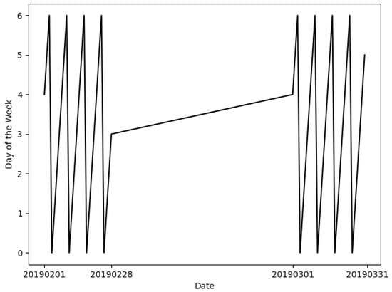 where h is the day of the week (0 for Monday, 1 for Tuesday, etc.), q is the day of the month (1 for 1st, 2 for 2nd, etc.), m is the month (1 for January, 2 for February, etc.), K is the year of the century, J is the zero-based century, and  · is the integer part of a number. Due to the · function and the mod operation, this mapping is a piecewise continuous function with many nonlinearities (Figure 1). Neural Networks and Graph Neural Networks have to own excessive numbers of activators and parameters to fit all continuous sections of this mapping [7].