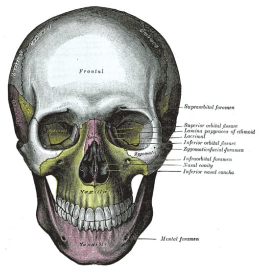 The most complex part of the human body is the craniofacial region because it consists of different bones integrated together in a very complex way. The bones that make up this region are shown in Figure 1, taken from [1]. There can be several reasons for cranial fractures such as sports injury, falls, trauma and home violence. Different tools, including X-rays, Magnetic Resonance Imaging (MRI) and Computed tomography (CT) scan are used to diagnose the craniofacial fractures. The main goal of craniofacial fracture reconstruction is to get and restore both normal physiological function and esthetics. As discussed earlier, the cranial part is a complicated anatomical region of the body. Therefore, to diagnose the craniofacial region is always a challenging task both for the surgeon and the radiologist. Most of the time, only radiologists can detect the fractures using radiological imaging tools.