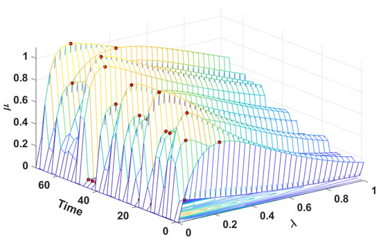 The friction characteristics under different runway conditions and the optimal slip rate corresponding to the system are shown in Figure 8, the red dots represent the optimal slip rate values on different runways.