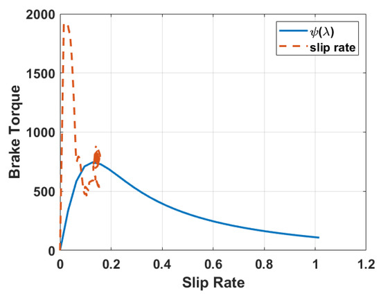 Thus, the proof is complete. In addition, to further prove the trace performance, the closed-loop trajectory of the system under control is drawn as in Figure 17. It can be seen in Figure 17 that the brake torque converged to the extreme point of (the expression of can be found in [38]), which indicates that, under the control action of the proposed controller, the braking system converged to an optimal operating point, despite the existence of model uncertainty and disturbance.