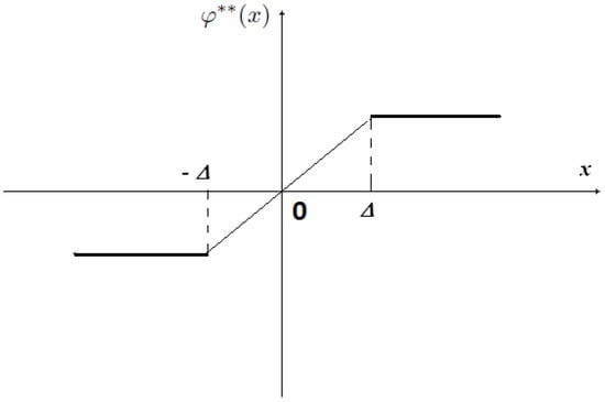 - Class (of all symmetric “approximately uniform” distributions):whereis the centred uniform distribution and is one process with a different distribution density. The parameter characterises the level of the effect of a “dirty” distribution to the basic one .