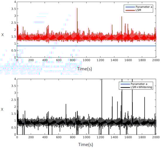 - Seong, S.M. A modified direct whitening method for ARMA model parameter estimation. In Proceedings of the 2007 International Conference on Control, Automation and Systems, Seoul, Korea, 17–20 October 2007; IEEE: Piscataway, NJ, USA, 2007; pp. 2639–2642. [Google Scholar]