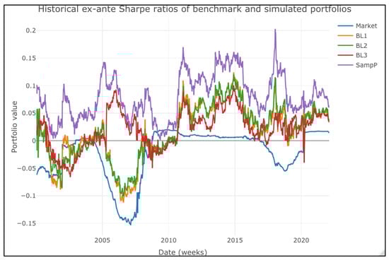 Figure 4. Simulated portfolios’ historical ex-ante Sharpe ratios.