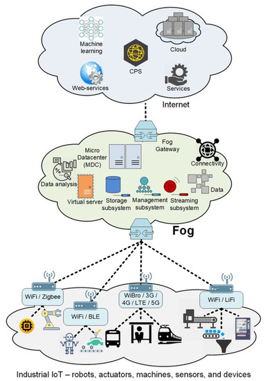 - Aazam, M.; Zeadally, S.; Harras, K.A. Deploying Fog Computing in Industrial Internet of Things and Industry 4.0. IEEE Trans. Ind. Inform. 2018, 14, 4674–4682. [Google Scholar] [CrossRef]