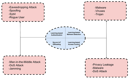 IoT devices have grown considerably, infiltrating practically every aspect of the human social world [1]. IoT devices usher in the smart environment in the form of smart homes, intelligent industry, and smart healthcare in which everything is connected to the Internet ubiquitously [2]. As an illustration, there are smart medical bio-sensors which not only monitor health from remote locations but also administer medicines in a real-time manner [3,4]. Other instances include smart bridges which can monitor vehicular load [5], smart power grids for detecting disruptions and power management distribution [6], and smart machinery which have built-in sensors for task automation. In addition to being ubiquitous, IoT devices are actively employed in practically every aspect of life, and the numbers are startling. The number of internet-connected devices surpassed the world’s population of around 6.7 billion people in 2008. According to estimates, there will be 6.1 billion mobile phone users and 50 billion items linked to the Internet by 2022 [7]. By 2027, it is expected that industries will have 27 billion automated machines. When the attention is shifted to the volume of data created, one may see the beginning of the Zettabyte era [8]. In 2013, 3.1 zettabytes of data were created by devices connected to the Internet. It was 8.6 zettabytes in 2014, and it is predicted to be close to 400 zettabytes by 2022 [9]. Though the life-changing advantages are numerous, the security and privacy problems of a system with a plethora of devices built separately and connecting via diverse protocols, as well as generating zettabytes of data in the cloud, are significant [10]. It is astonishing to learn what type of information is kept in the cloud and how easy hackers can access it. According to the Global Cloud Index [11], which discusses the different categories of cloud-oriented data, 7.6% of research on file-sharing platforms included private information. In 4.3% of all research articles, keywords related to personal information, including tax ID numbers, phone numbers, addresses, and social security numbers, are found. Moreover, payment-oriented data of debit card numbers, bank account information, and credit card numbers are found in 2.3% of articles. Finally, protected health information for patient diagnoses, record registration numbers, and treatments are found in 1.6% of research articles. As the number of individuals using IoT devices increases, more people become susceptible to fraudsters as the data collected by the IoT devices is vulnerable to attacks. The amount of security breaches has risen considerably, with recent examples including the hacking of a water treatment plant [12], the Saudi Aramco $50 Million Data Breach (Source: https://purplesec.us/recent-cyber-security-attacks/ (accessed on 2 February 2022)), the Kaseya Ransomware Attack (Source: https://purplesec.us/recent-cyber-security-attacks/ (accessed on 2 February 2022)), phishing, ransomware, supply chain attacks (Source: https://purplesec.us/recent-cyber-security-attacks/ (accessed on 2 February 2022)), and the planning of robberies using data from wearable devices [13,14]. According to the Cybercrime Report (Source: https://cybersecurityventures.com/hackerpocalypse-cybercrime-report-2016/ (accessed on 2 February 2022)), the cost of cybercrime consequences reached $6 trillion per year by 2021.