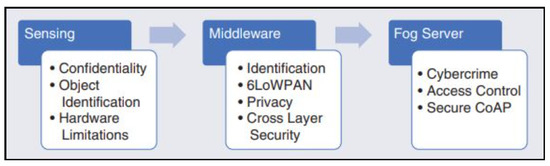 - Kumar, P.; Zaidi, N.; Choudhury, T. Fog computing: Common security issues and proposed countermeasures. In Proceedings of the 2016 International Conference System Modeling & Advancement in Research Trends (SMART), Moradabad, India, 25–27 November 2016; pp. 311–315. [Google Scholar]