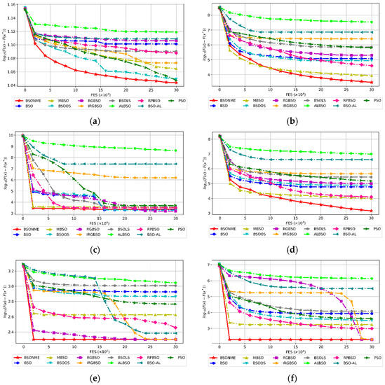 The convergence curves in Figure 1 illustrate the mean value of solution error (in logarithmic scale) of BSO, MBSO, IRGBSO and BSO-OS. Details of experimental parameters are given in Table 1.