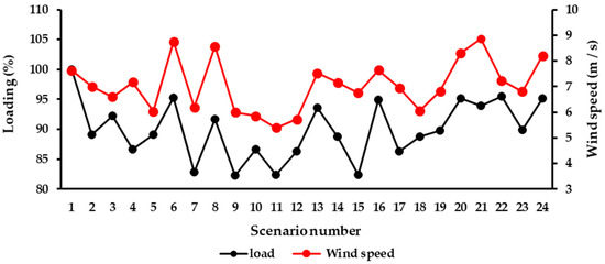 Wind speed and load consumed over 24 scenarios.