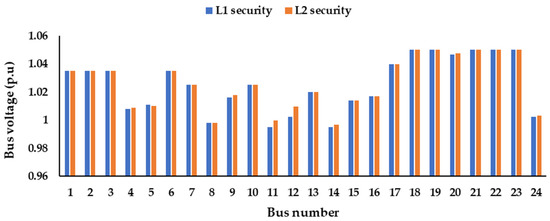 Buses’ voltage at scenario number 24 for the 24-bus system.