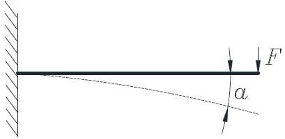 The force-bearing end of the leaf spring rotates α under the force F, and the moment of inertia can be defined as Equation (1):