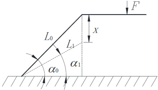 As shown in Figure 4, the parameters of L0, α0 are the initial length and slant angle of suspension spring, respectively. x is the displacement of top plate under the force F. Then, the relation of force and displacement is calculated as Equation (4):
