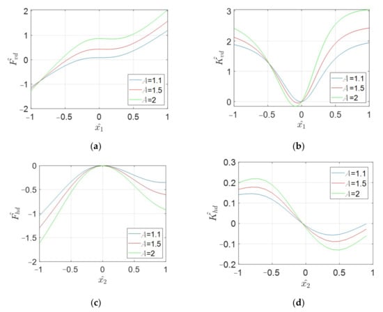 In addition, there are cubic relations between force and displacement from Figure 9. Therefore, the approximate expressions of the force can be expanded with the third order Taylor series near the static equilibrium position, and rewritten as Equations (20)–(23):