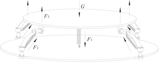 Another essential design parameter is the static load capacity. In order to realize the requirement of the static load force G being completely supported by four leaf springs, the tensile force F1 provided by the central spring and the elastic force F2 provided by the suspension springs should be balanced out to be zero.