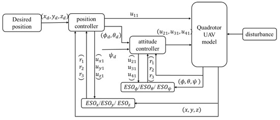 - Shao, X.L.; Liu, J.; Cao, H.L.; Shen, C.; Wang, H. Robust dynamic surface trajectory tracking control for a quadrotor UAV via extended state observer. Int. J. Robust Nonlinear Control. 2018, 28, 2700–2719. [Google Scholar] [CrossRef]
